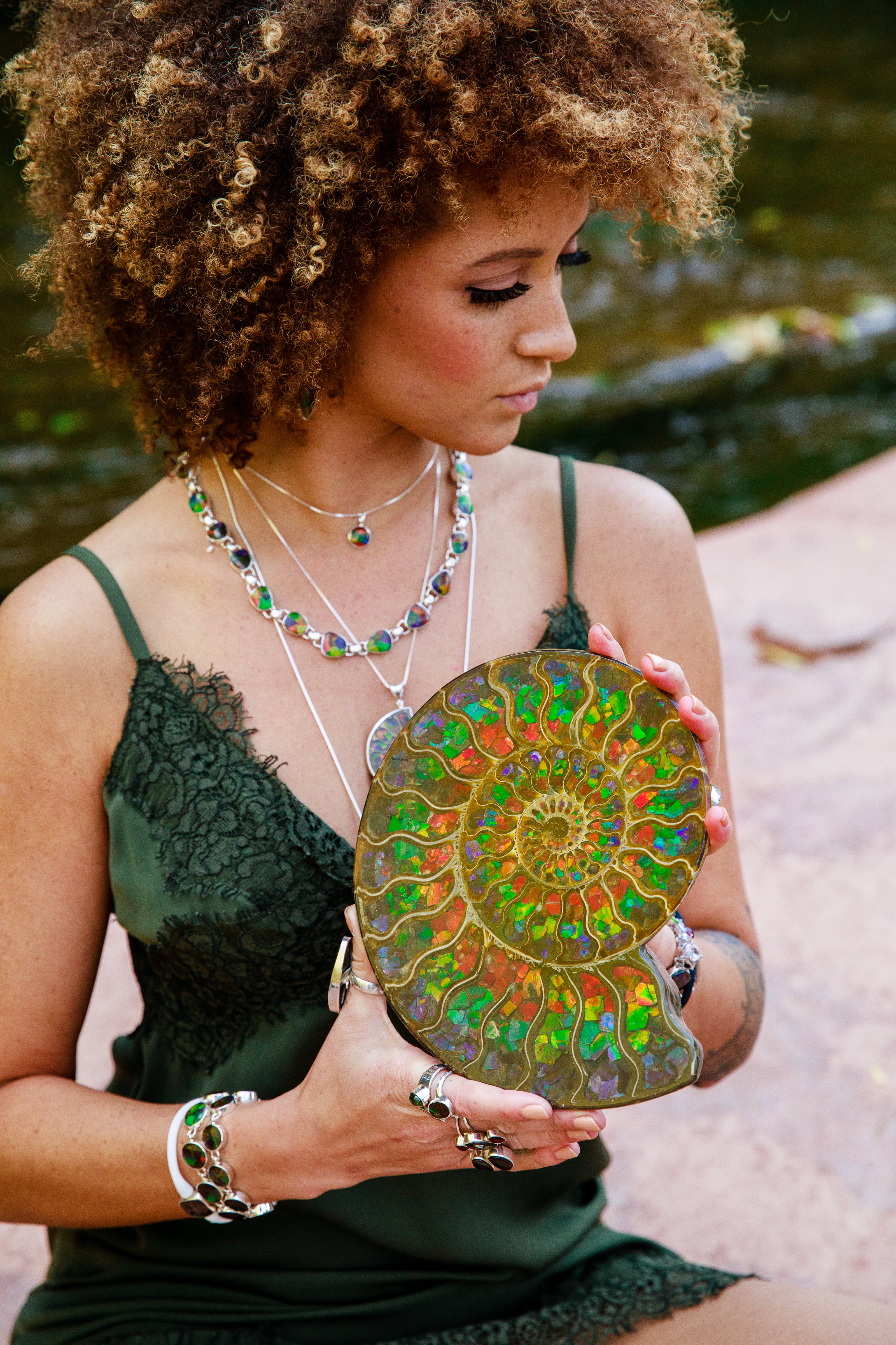 We are continually inspired by the natural beauty of Fossils, Gemstones, Crystals and Minerals, sourcing them directly from mines and travelling extensively to many remote parts of the world to create adornments that reveal the inherent beauty of natural gemstones and let them shine in a different context and light.