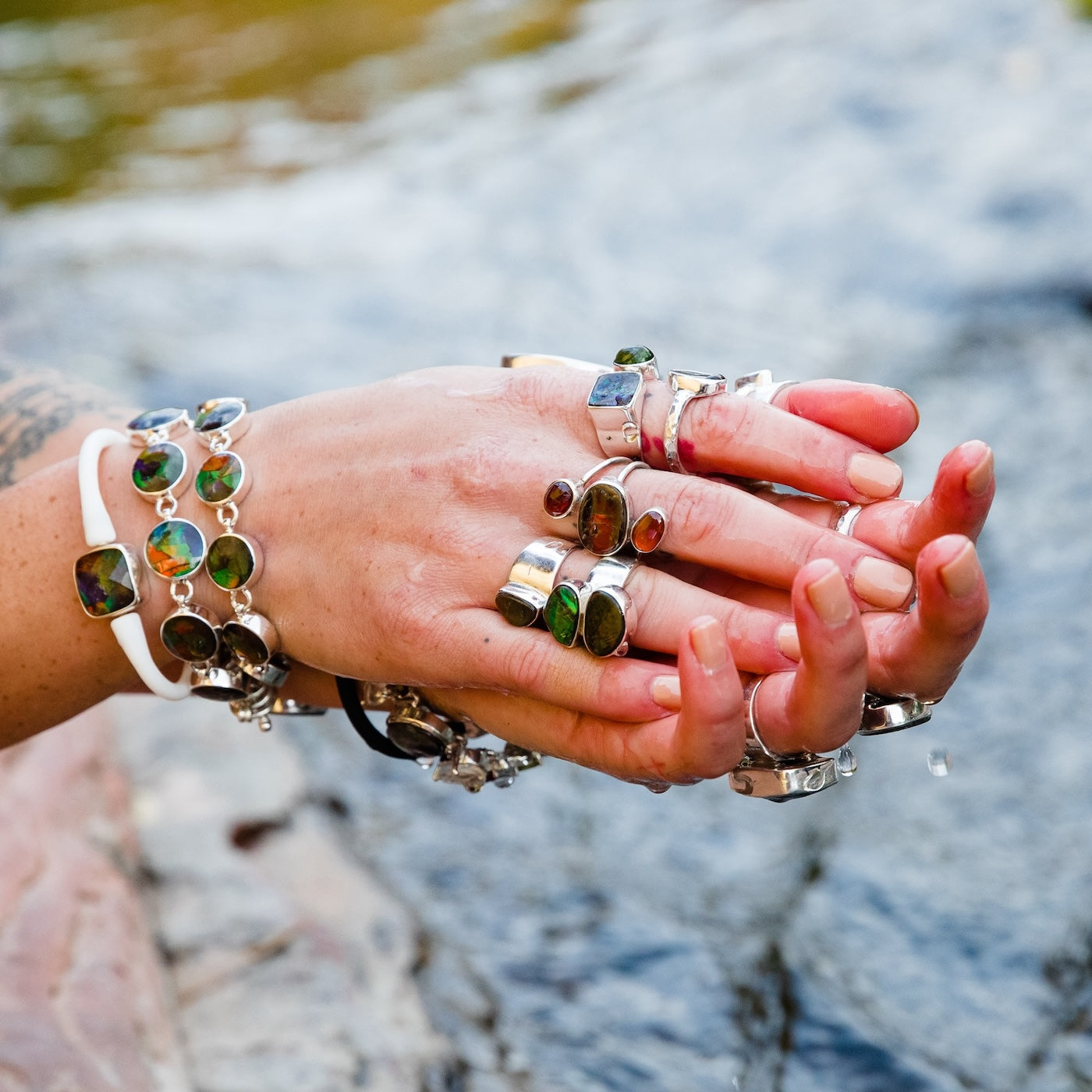 We are continually inspired by the natural beauty of Fossils, Gemstones, Crystals and Minerals, sourcing them directly from mines and travelling extensively to many remote parts of the world to create adornments that reveal the inherent beauty of natural gemstones and let them shine in a different context and light.