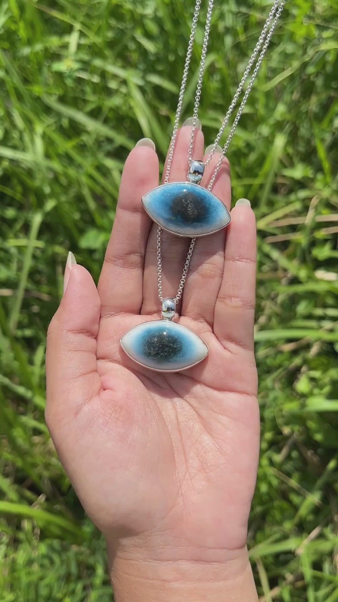 Starborn Blue Ice Glacierite Eye Shaped Pendant in Sterling Silver