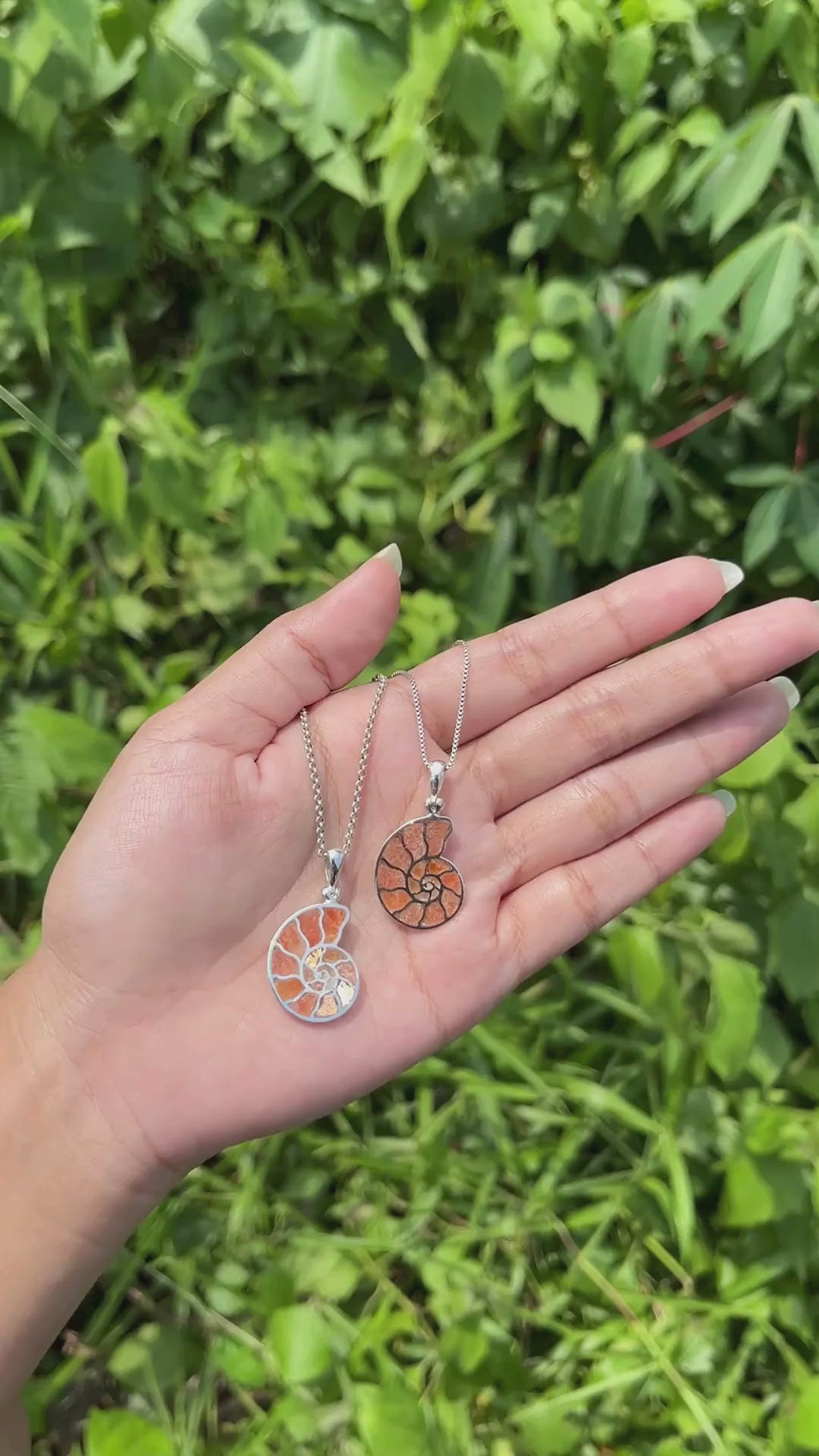 - Diese atemberaubenden Edelsteinscheiben werden fachmännisch geschnitten und von Hand in die Nautilus-Ammonitenkammern aus Sterlingsilber eingelegt. Das Erscheinungsbild des Anhängers ist mit seinem komplexen Nahtlinienmuster einzigartig.