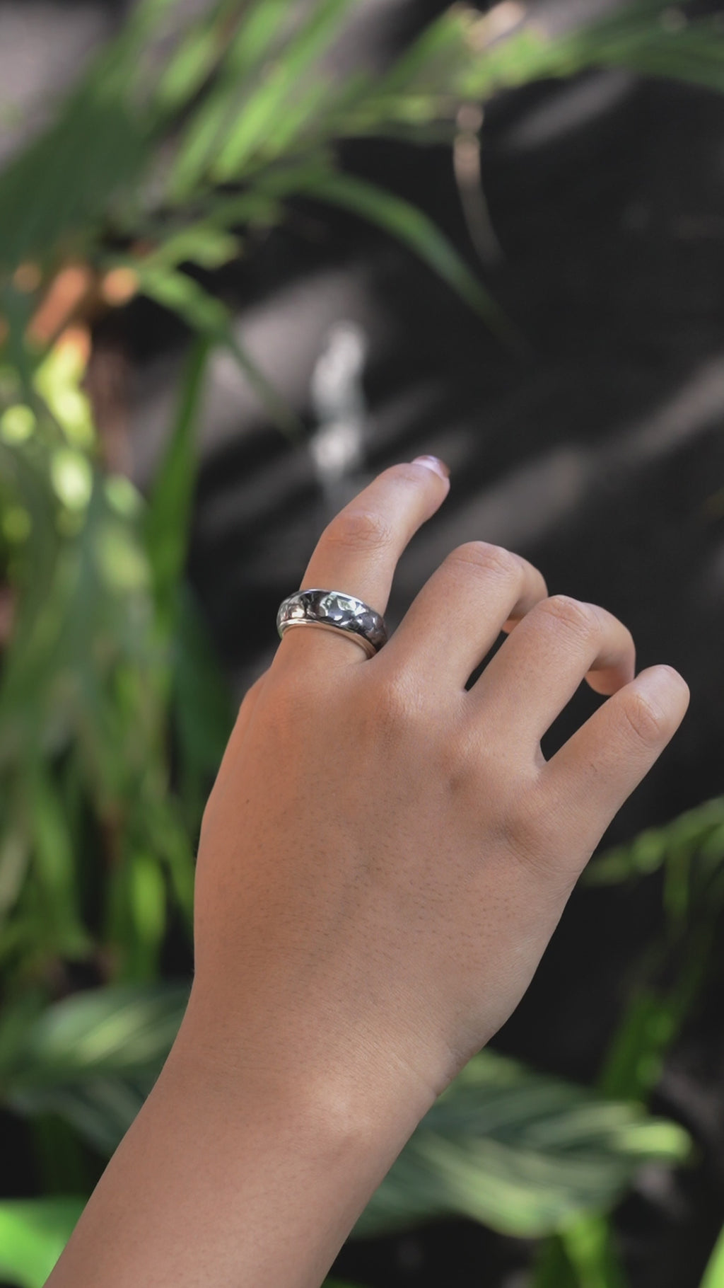 - This ring features an epoxy resin inlay that may degrade or dissolve when exposed to hot water, chemical solvents, or high temperatures. To preserve its appearance, avoid contact with hot water, steam, or harsh chemicals. Remove the ring before bathing, swimming, or cleaning if you are using strong chemicals.