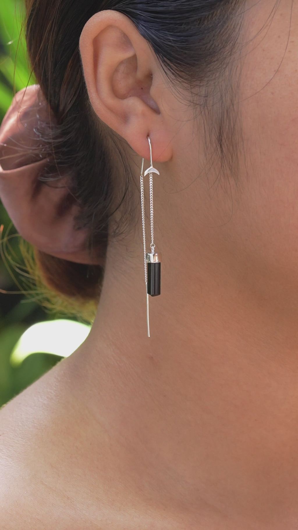 Starborn Tourmaline Crystal Threader Earrings with Crescent Moon Accents in Sterling Silver