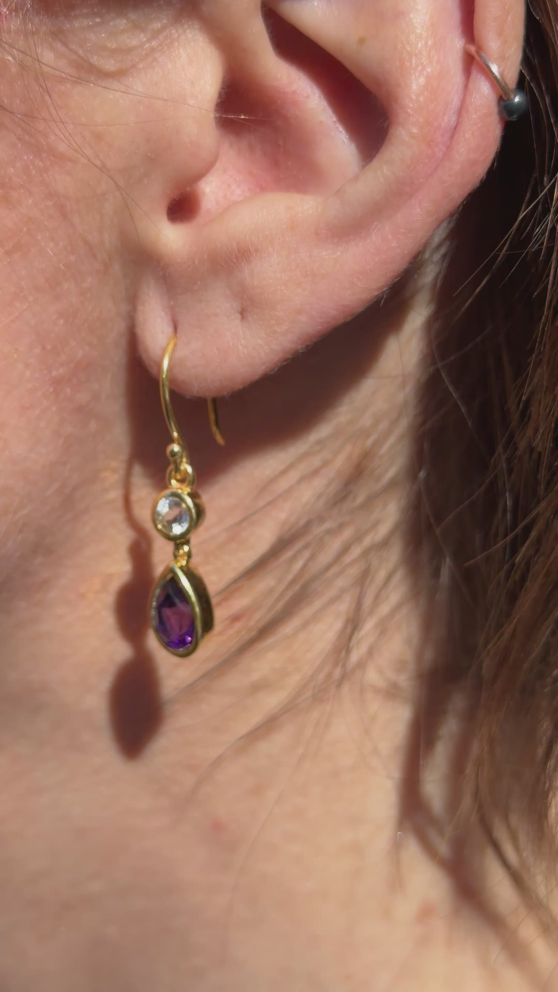Starborn Faceted Amethyst and White Topaz Dangle Earrings in Gold Micron