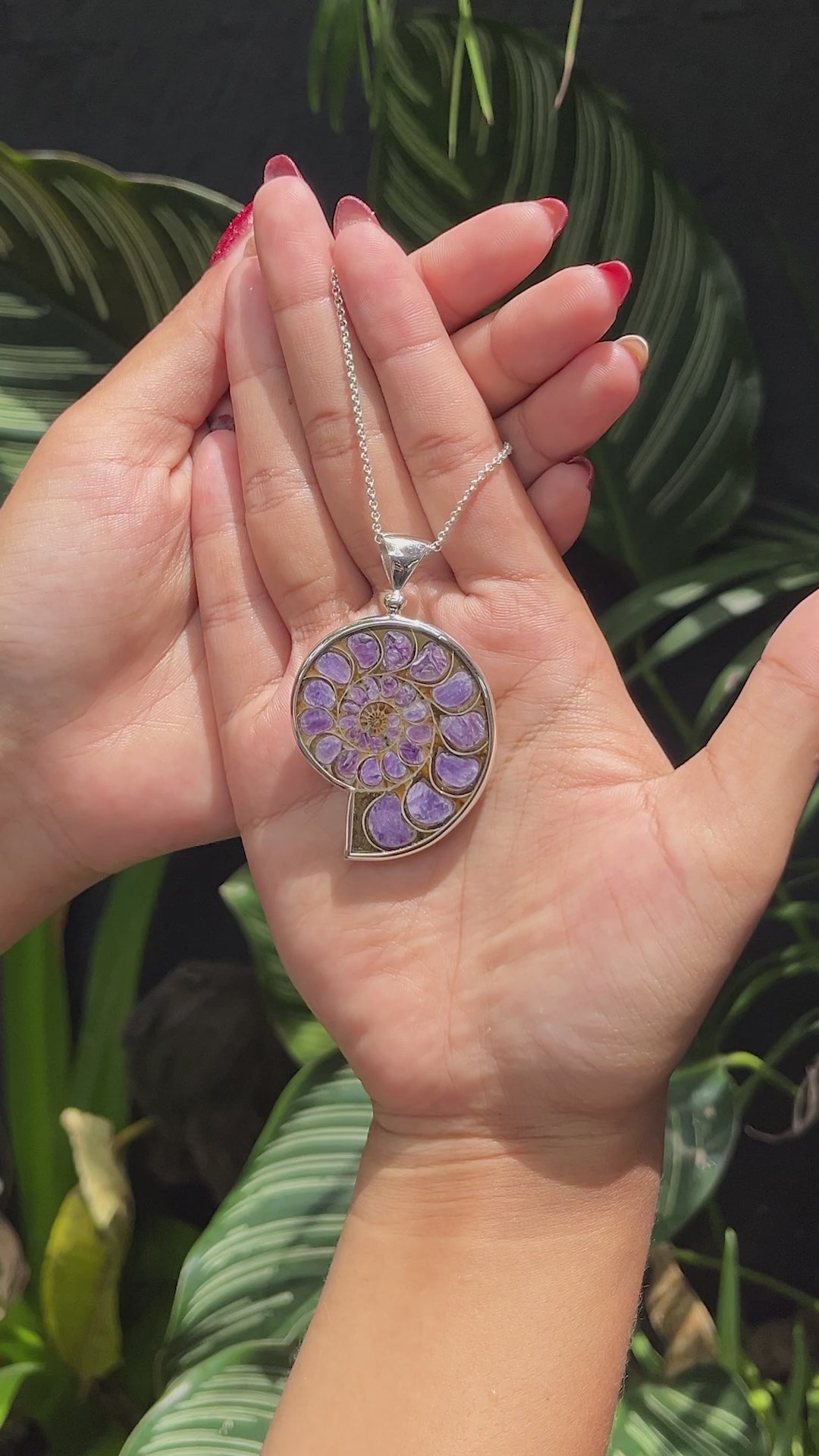 Celebrate the extraordinary beauty of this Ammonite with Charoite Inlay Pendant in 925 Fine Sterling Silver, a truly one-of-a-kind creation. The fossil’s natural spirals are complemented by rich purple Charoite inlay, forming intricate, unique patterns. Its rare combination of fossil and gemstone makes this pendant singular and unrepeatable, a collectible piece of timeless artistry.
