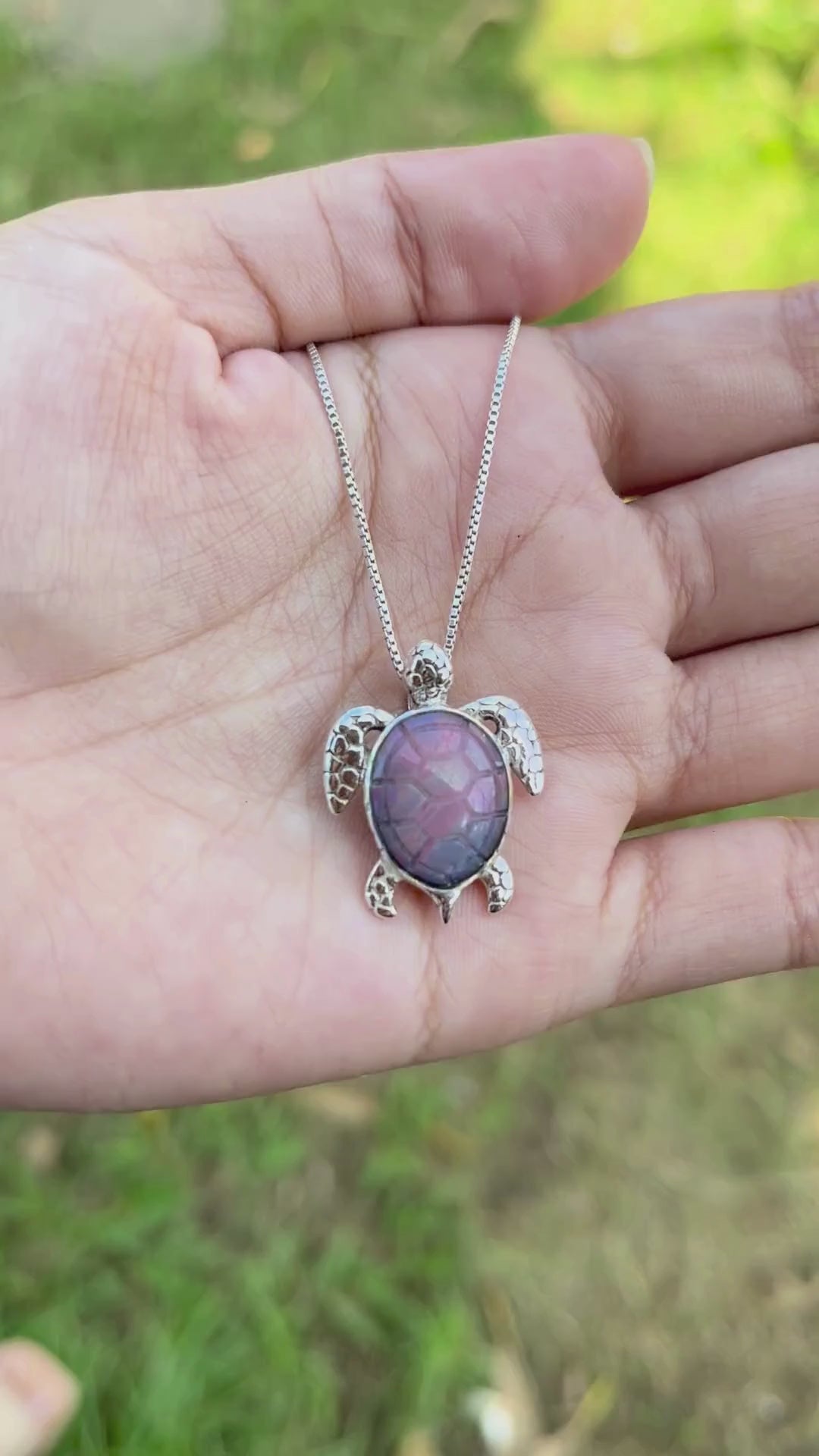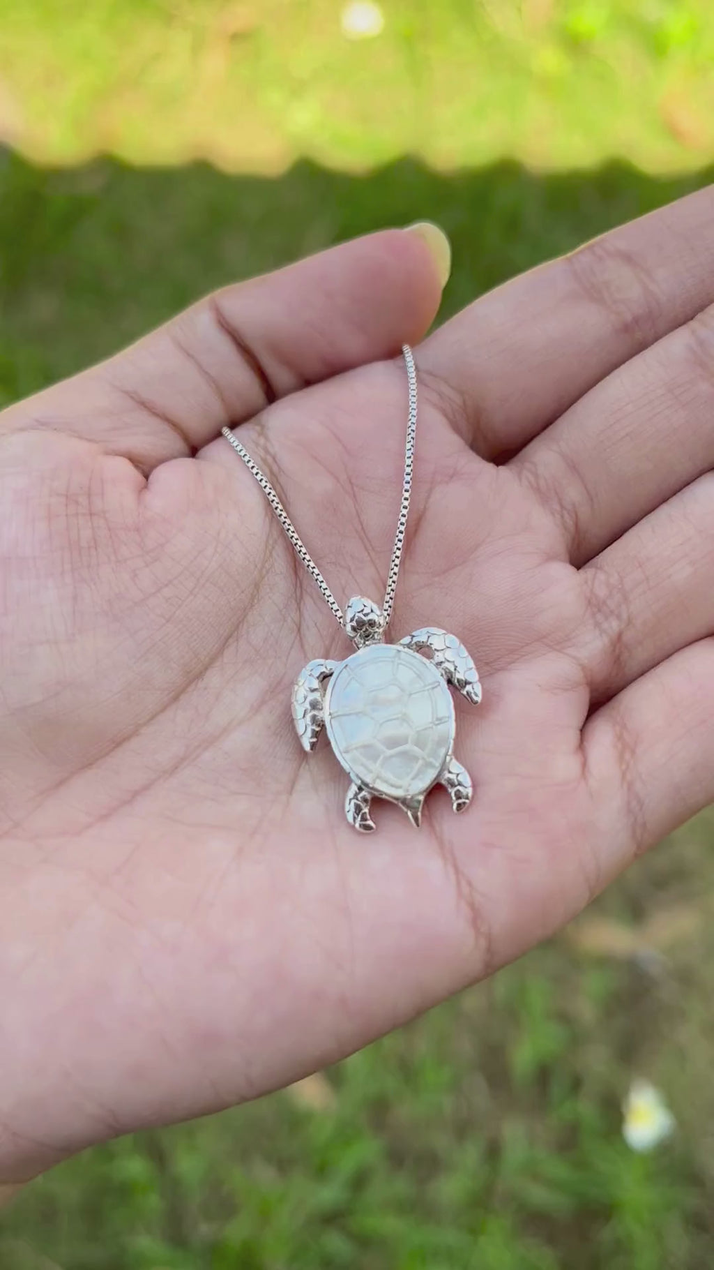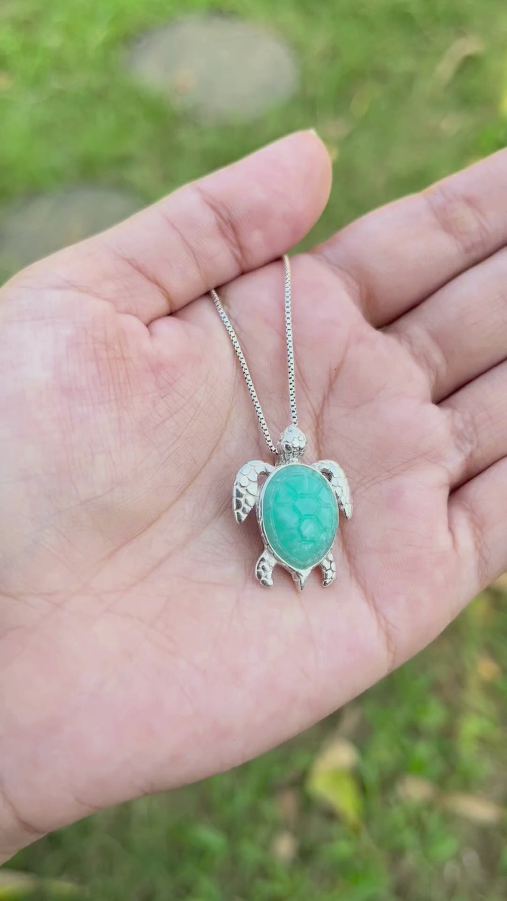- Discover the charm of the sea with this unique Sea Turtle Pendant. Measuring approximately 1 inch by 0.8 inch, this pendant features a stunning 15mm oval cabochon gemstone adorned with a carved turtle shell pattern, beautifully set within a playful and detailed Sea Turtle design.