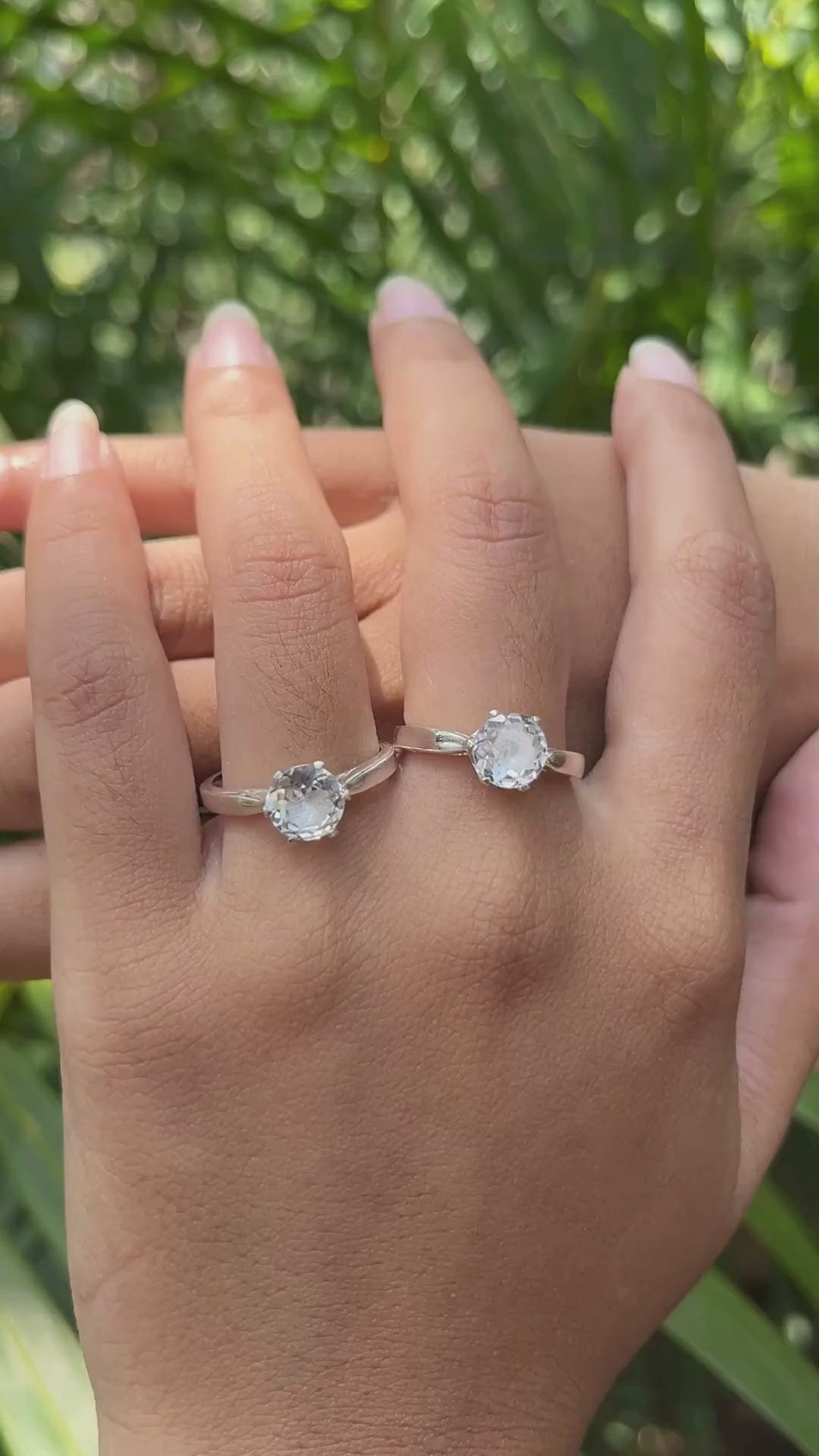 - Conjunto de puntas redondas de Danburita facetadas hechas a mano, en anillo de plata fina de ley.