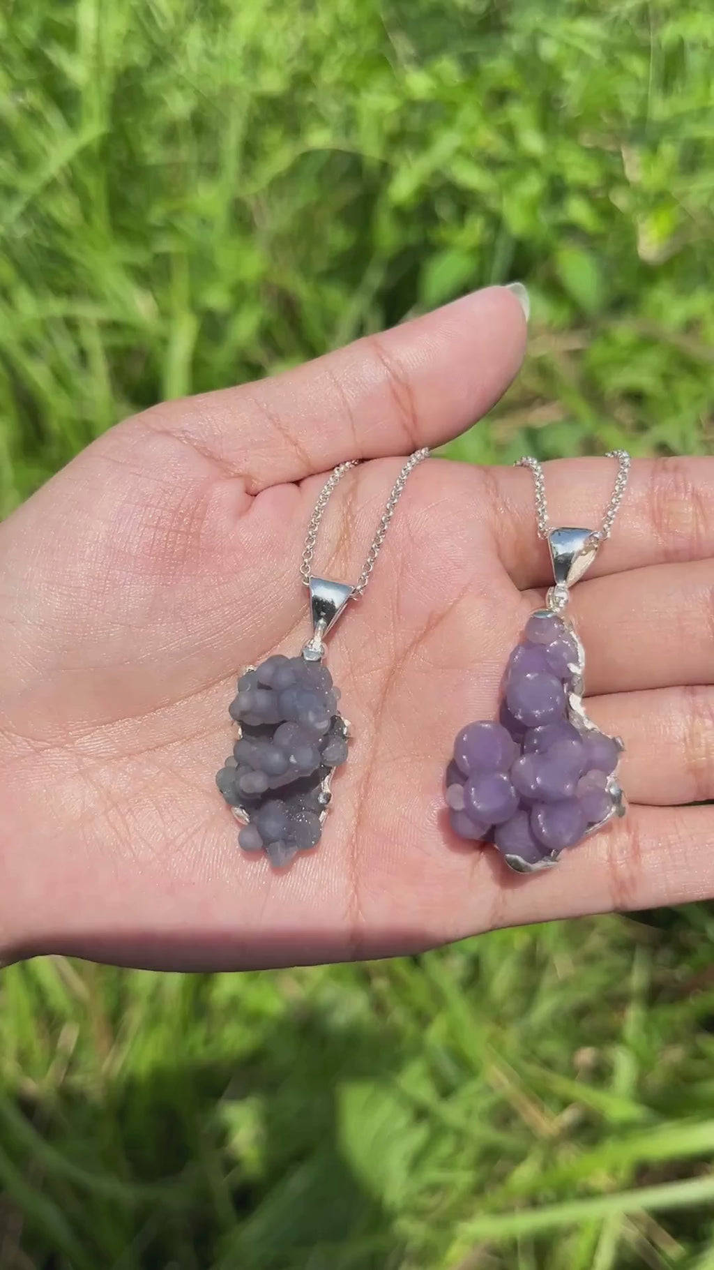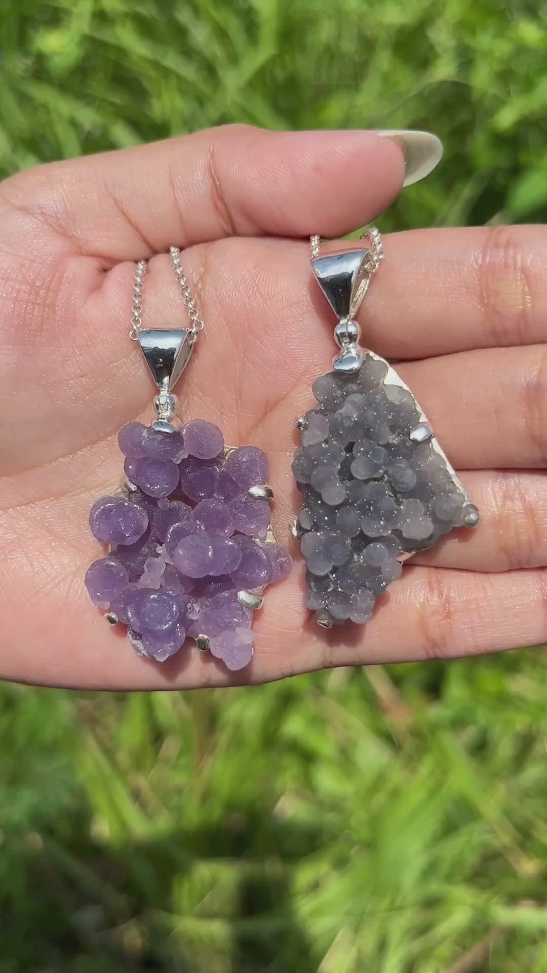 - Colgante único de Calcedonia de Uva formado por varias pequeñas calcedonias botrioidales.