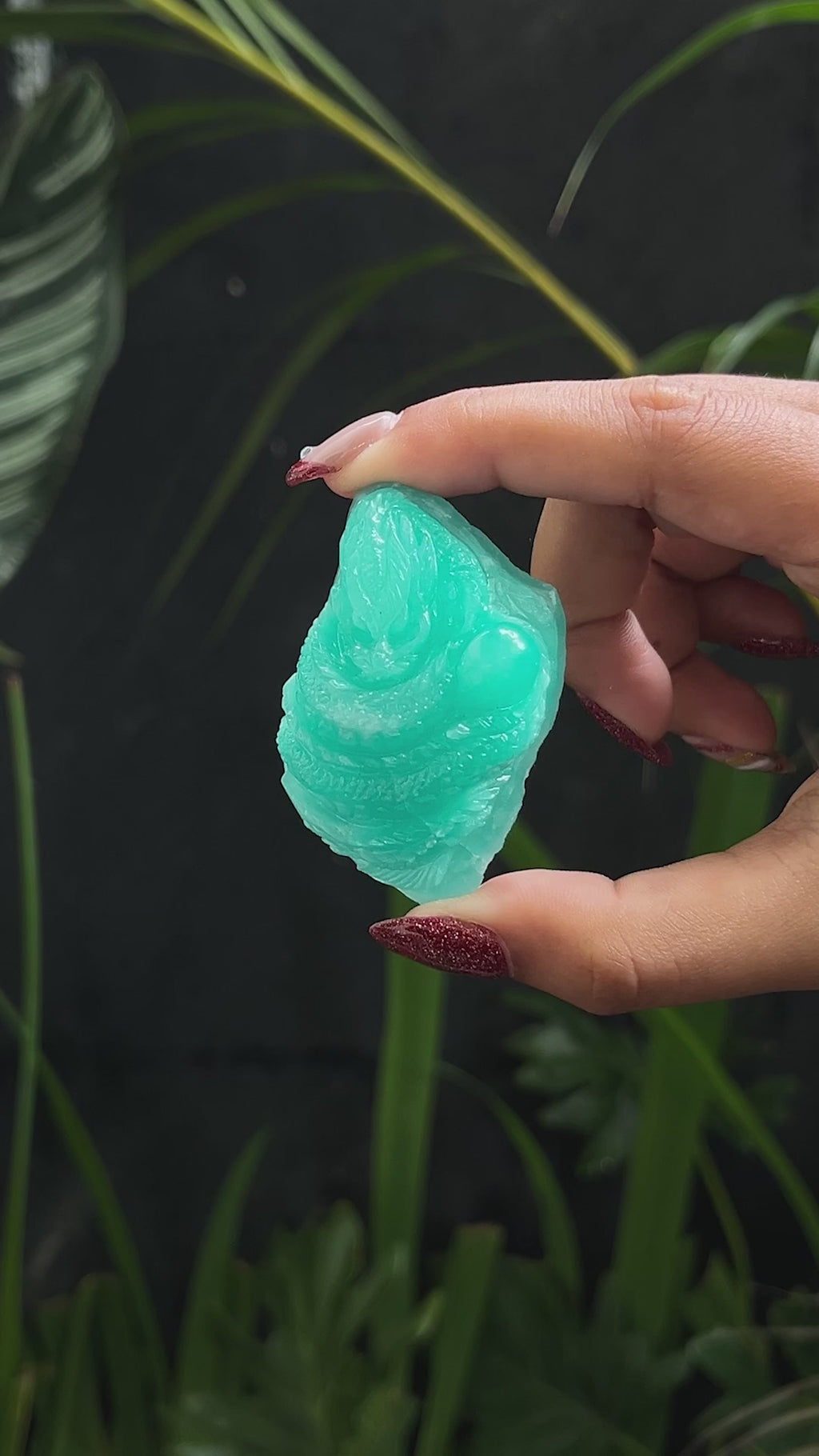 - A true masterpiece of natural beauty and artistry, this Hemimorphite carving reveals a rare front-facing Eastern Dragon, brought to life in vivid sky-blue hues. Every intricate detail reflects master hand-carving, making it a bold, symbolic, and entirely unrepeatable one-of-a-kind treasure.