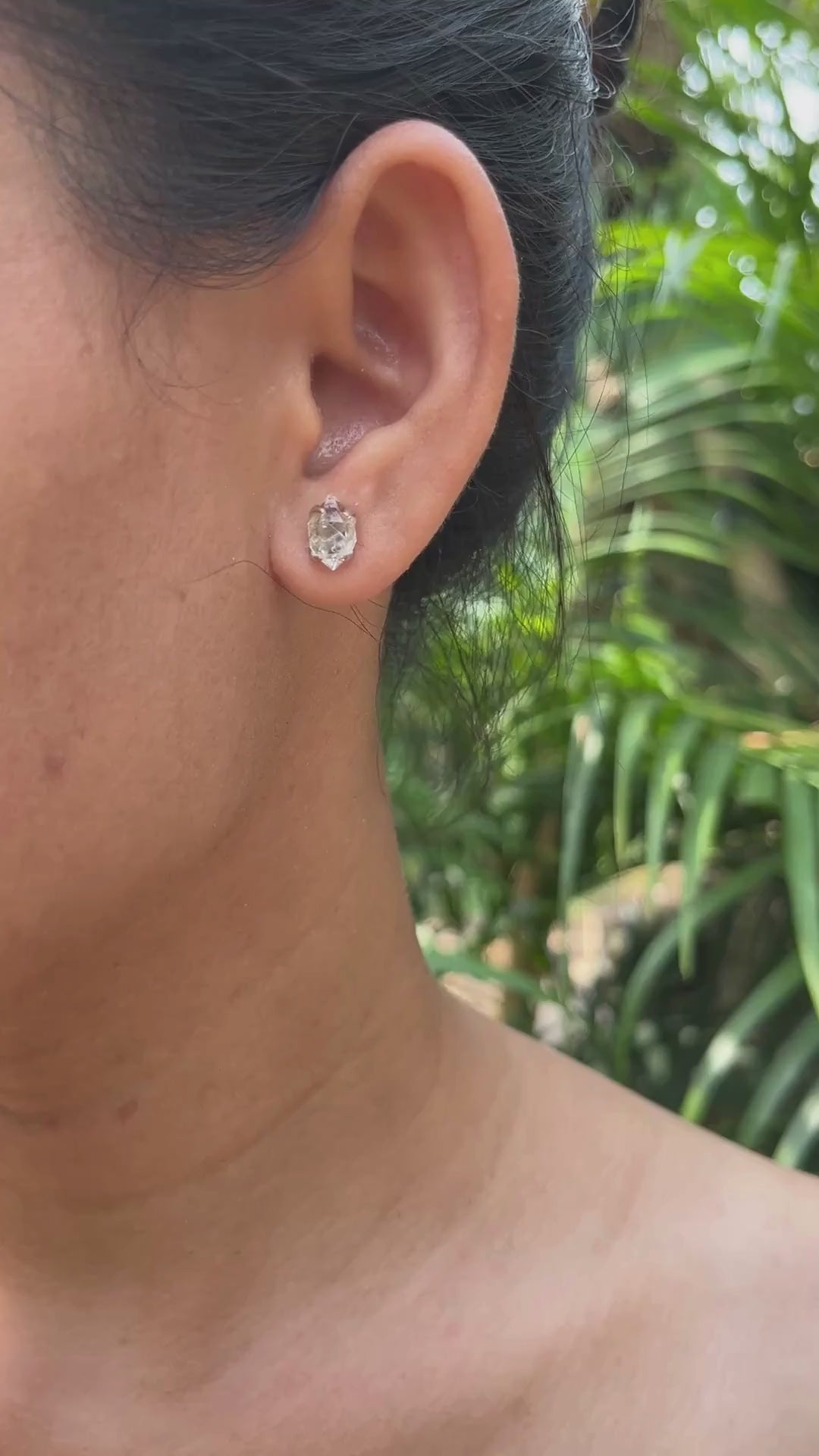 - Aretes estilo poste de diamantes Herkimer naturales, engastados con puntas en fina plata de ley.