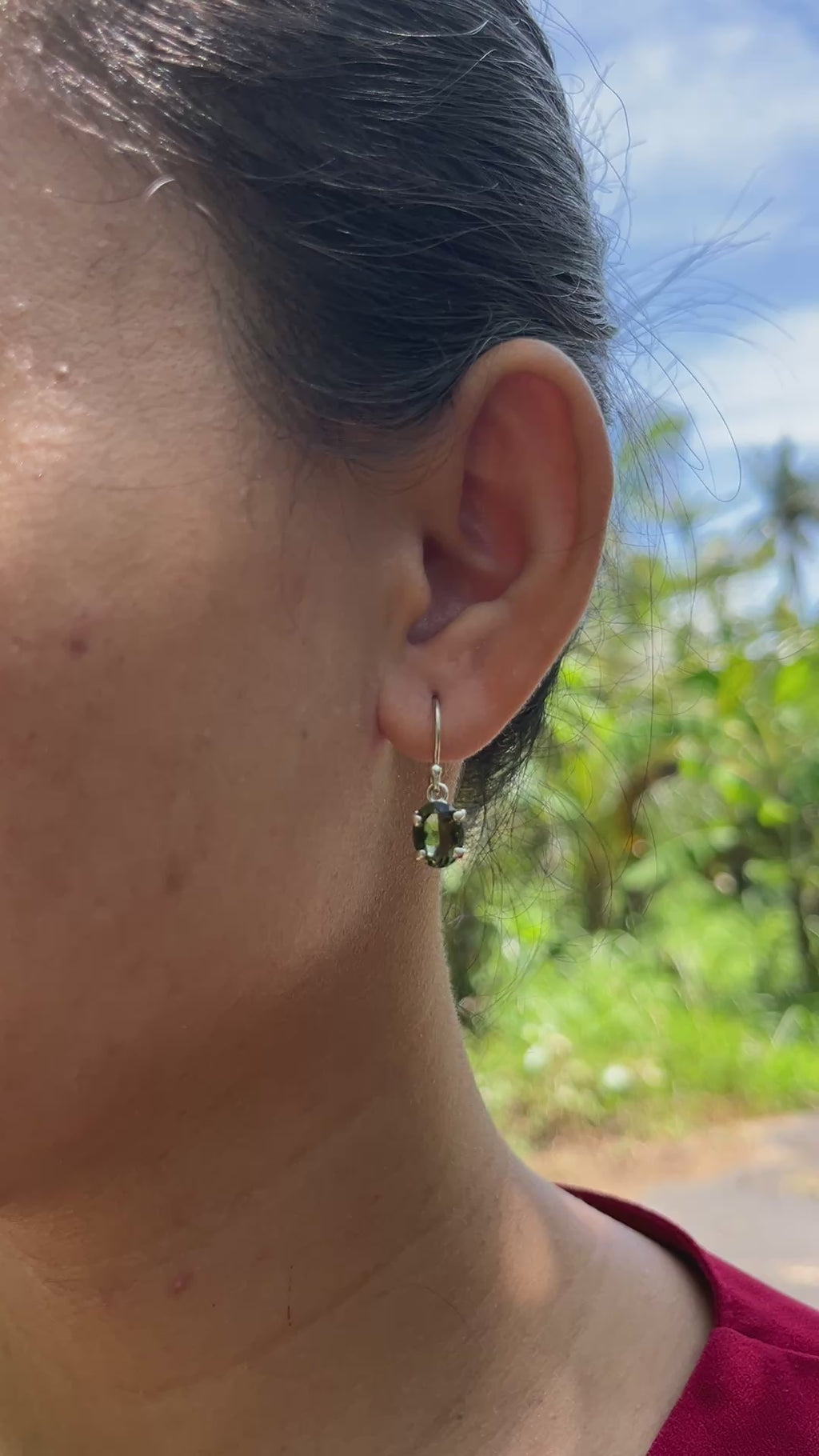 - Los pendientes de forma ovalada de Moldavita facetada natural están elaborados a mano en Plata de Ley Fina.