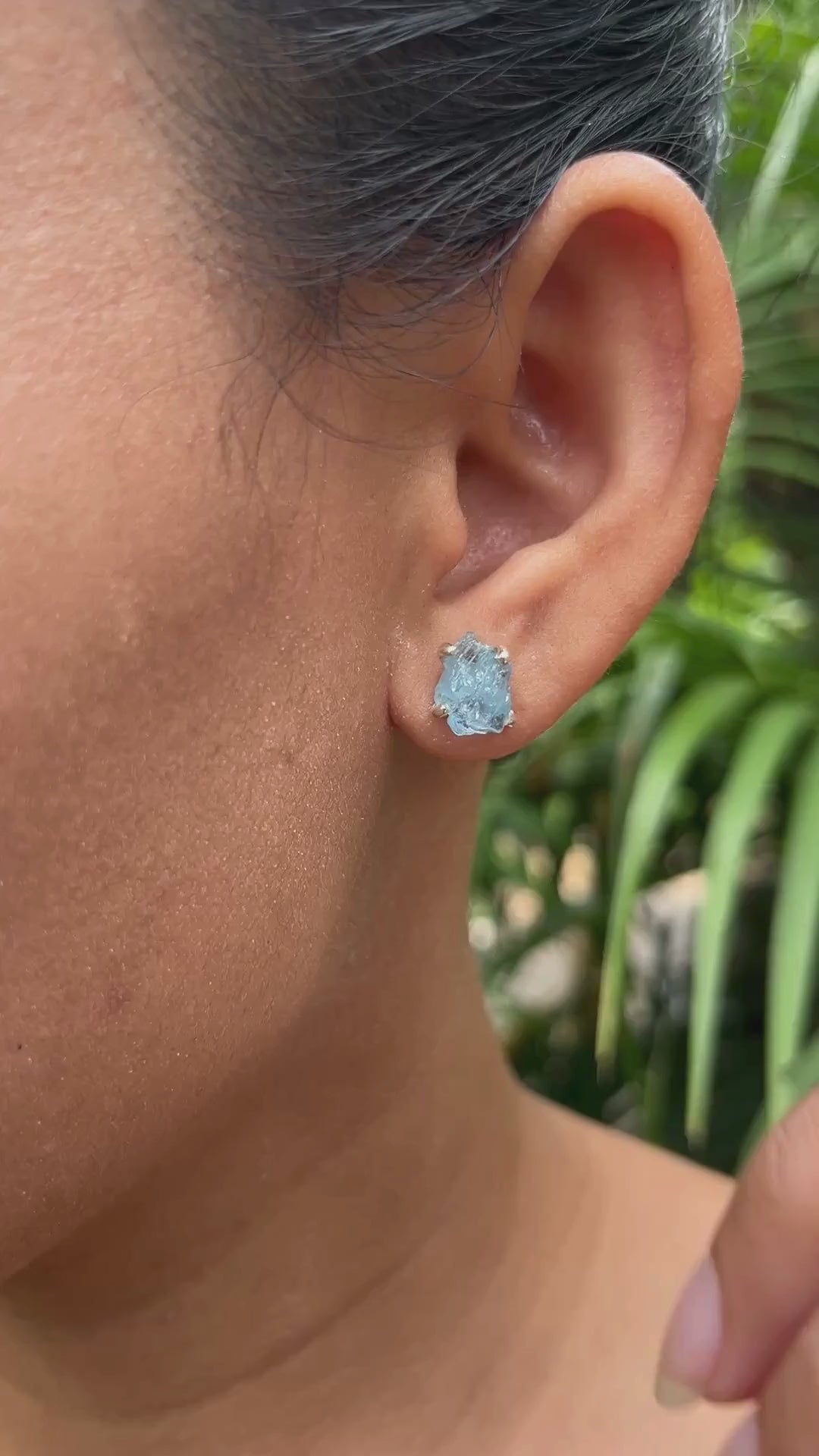 - Los aretes con puntas de aguamarina en bruto natural están hechos a mano en plata de ley fina.