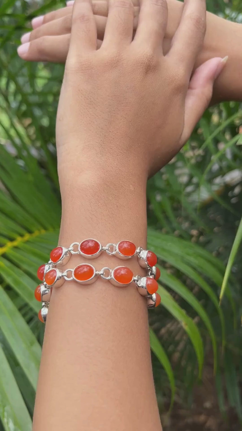- Esta hermosa pulsera cuenta con 10 piezas de cabujón ovalado de cornalina de 7x9 mm engastadas en un engaste de bisel con eslabones simples entre cada piedra y 3 botones para un ajuste perfecto. Los 3 botones se ajustan fácilmente a tamaños de 7 pulgadas, 7,5 pulgadas, 8 pulgadas y 8,5 pulgadas.