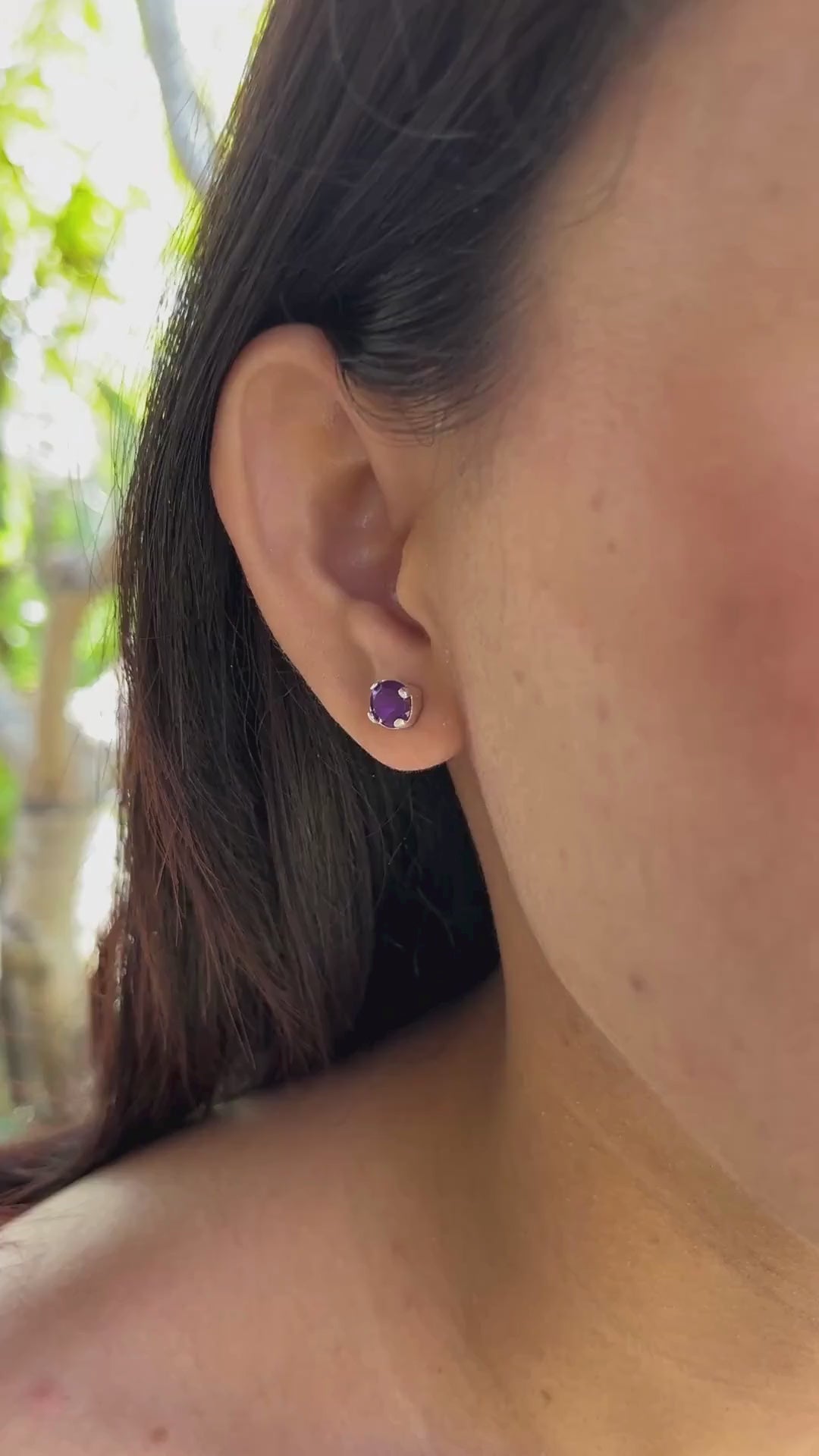 - These round faceted gemstone studs, set in polished Sterling Silver with a bezel style, offer a subtle yet stunning look. Their modest size and sleek design make them ideal for stacking or wearing alone. Available in many sizes: