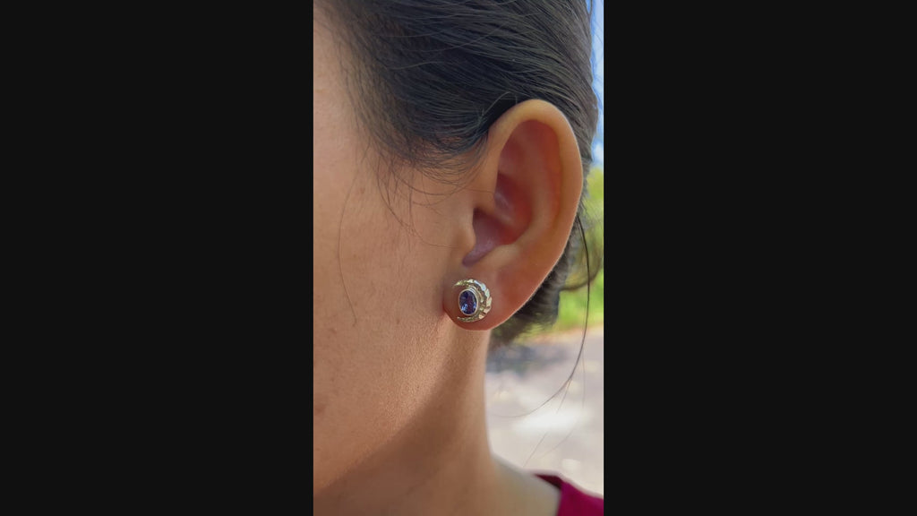 - These exquisite post earrings showcase a 6×4 mm faceted oval gemstone expertly set within a Sterling Silver hammered crescent moon. Each bezel-set oval stone is beautifully accented on both sides by the hammered crescent moon in Sterling Silver.