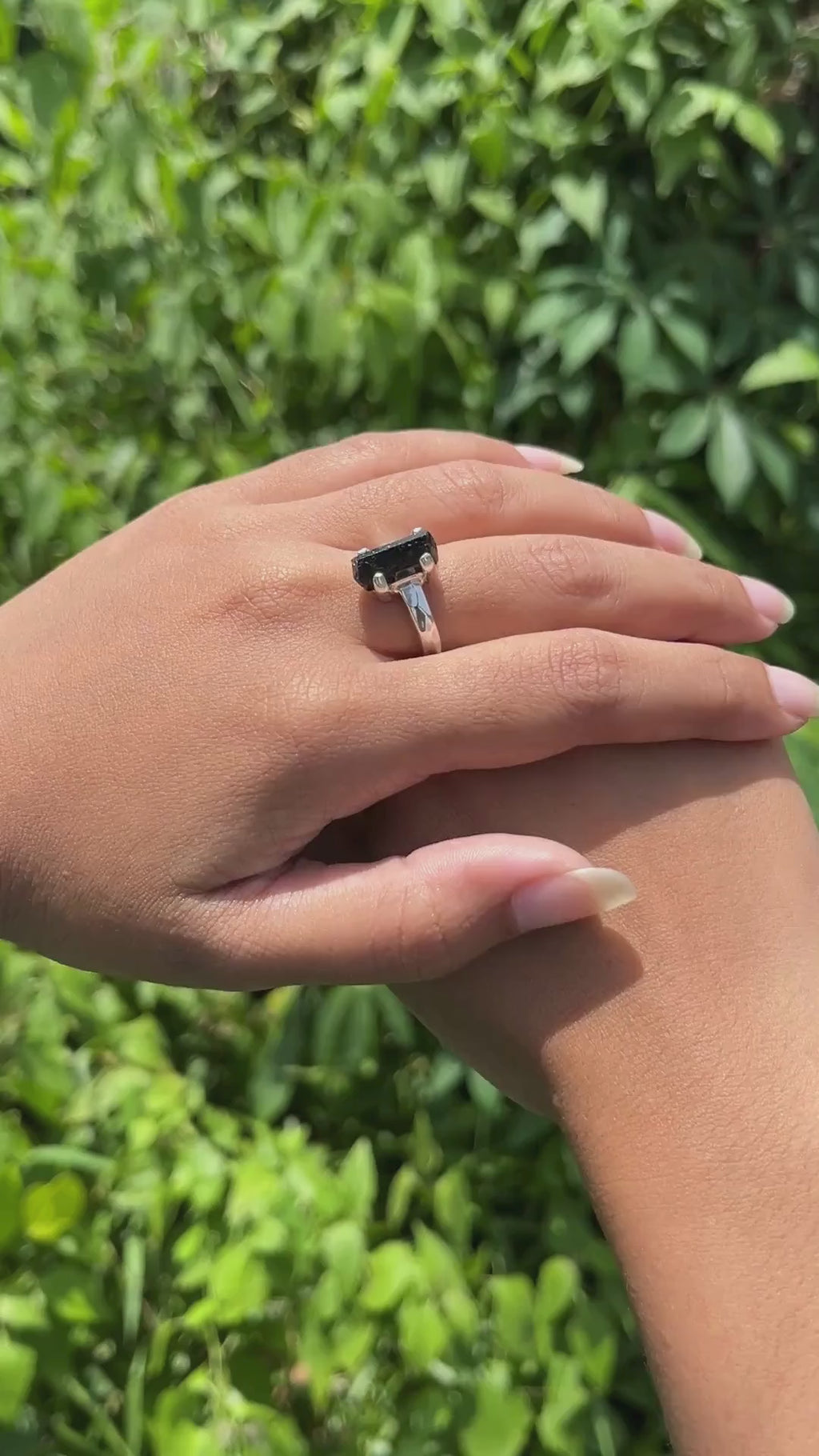 Starborn Black Tourmaline Crystal Prong Set Ring in Sterling Silver