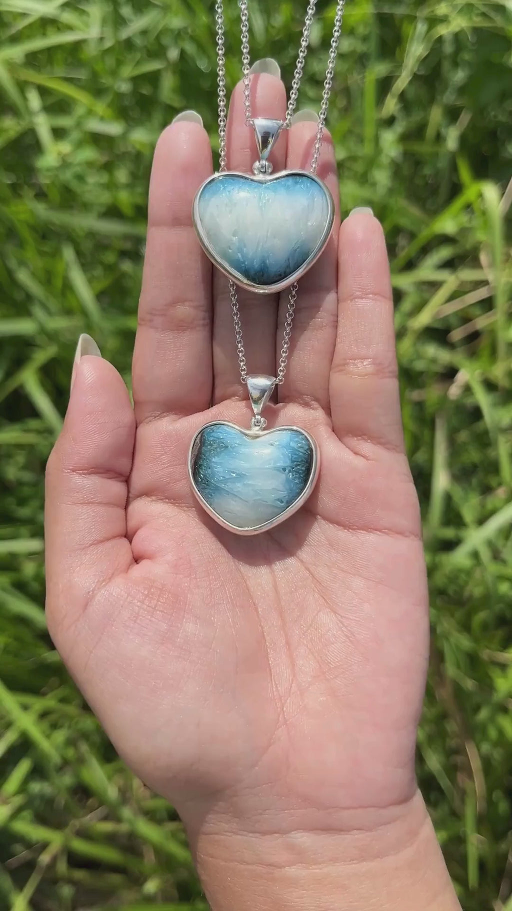 - Delicate and enchanting, this heart-shaped Blue Ice Glacierite pendant is set in fine Sterling Silver, highlighting the stone’s stunning glacial blue tones. Available in 2 sizes: