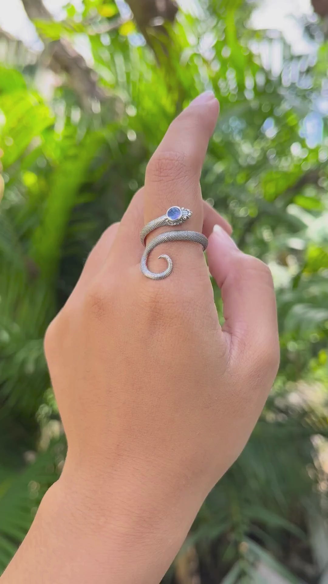 Starborn Coiled Snake Ring with Faceted Tanzanite Gemstone in Sterling Silver
