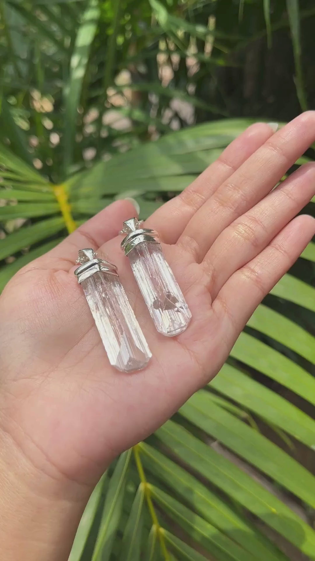 - Naturally elegant, this handcrafted pendant features a beautifully transparent Danburite crystal, cap-set in fine sterling silver. Coming in multiple sizes measuring approximately: