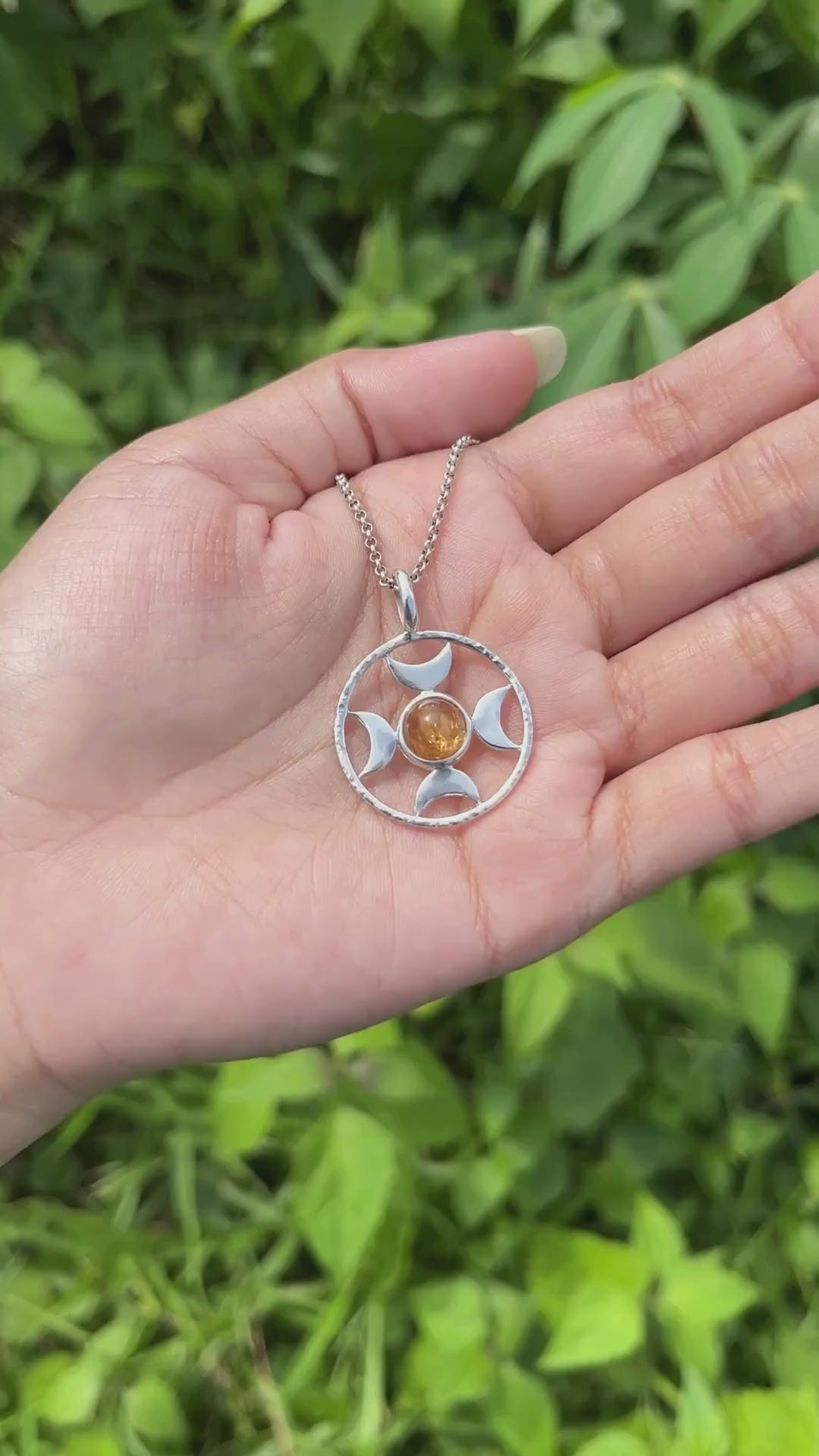 - Inspired by the celestial motion of the moon, this pendant highlights a luminous Imperial Topaz sphere gracefully cradled within sterling silver. A perfect blend of sophistication and mystique, available in two sizes.
