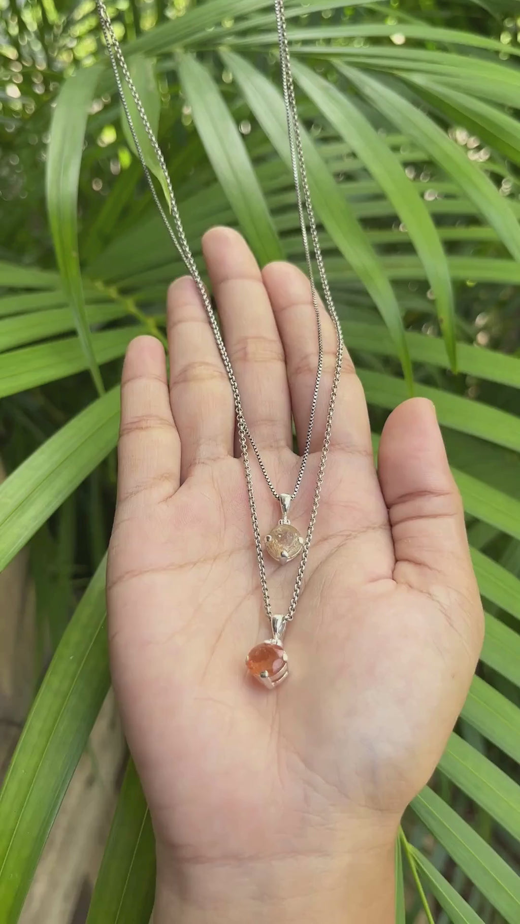 - Beautiful and bright, this rare 7mm round faceted Sunstone sparkles with warm light. Prong set in Fine Sterling Silver, the pendant features a clean, minimal design and measures about 0.70 inches in length including the bale.