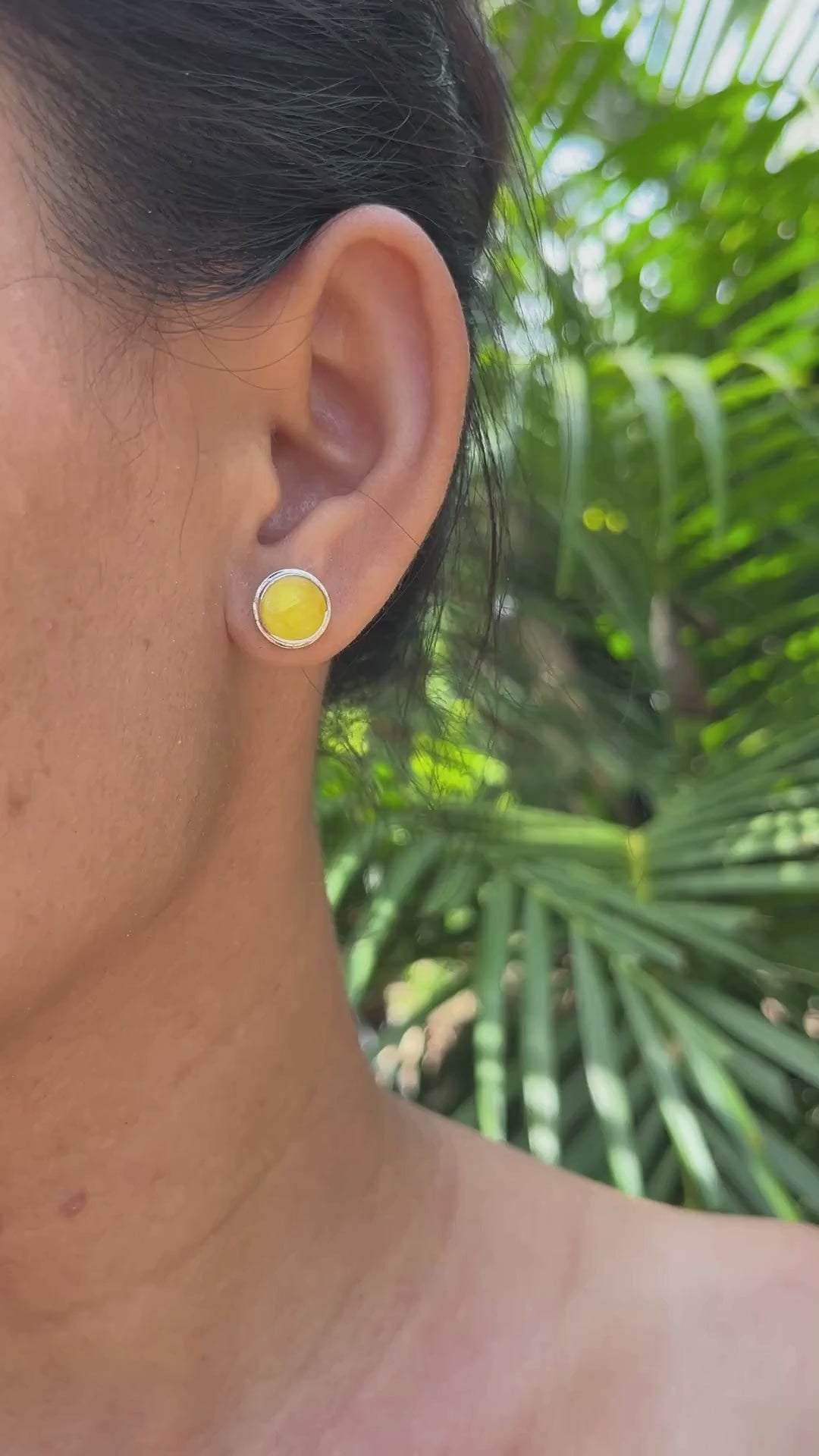 - Handcrafted in 925 Fine Sterling Silver, these dazzling earrings feature genuine round brucite cabochons, available in four sizes