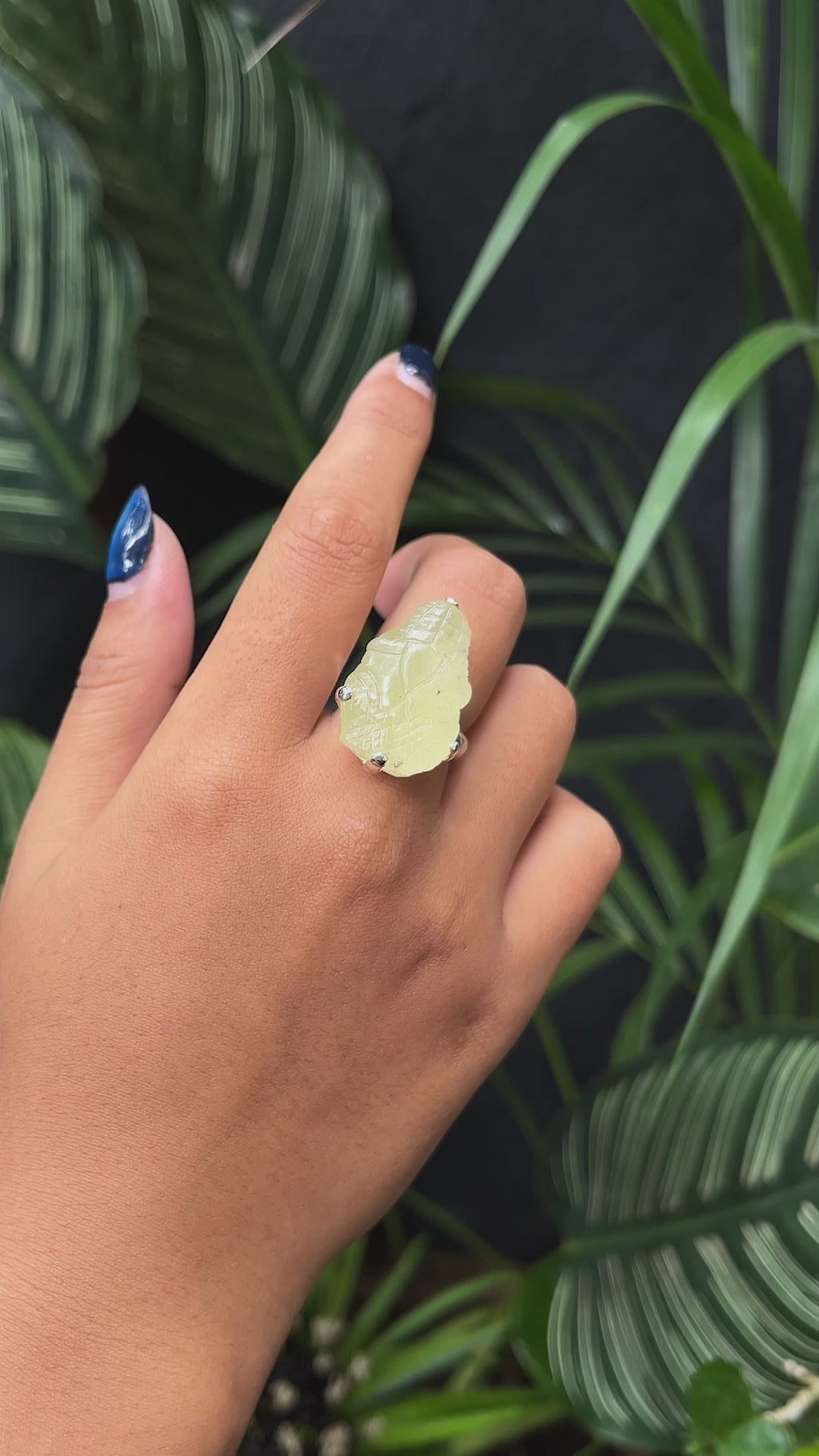 A one-of-a-kind testament to artistry and geological rarity, this Hand-Carved Libyan Desert Tektite Snake Head Ring showcases a lifelike serpent motif, meticulously sculpted to follow the natural contours of the tektite. The level of detail and precision in the carving highlights both the skill of the artisan and the remarkable character of the stone, making this ring a truly unique collector’s piece.