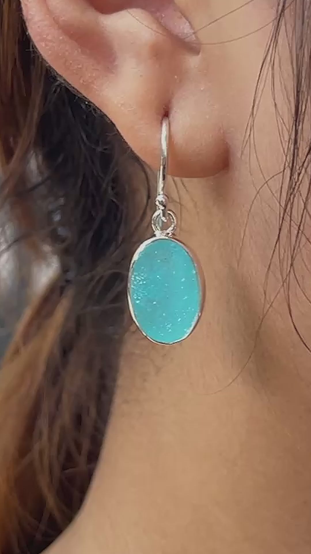 Stand out with this one-of-a-kind Hemimorphite dangle earring, featuring a naturally shimmering drusy surface that captures and reflects light with every movement. Expertly set in solid 925 Sterling Silver, this piece highlights the gem’s vivid blue hues and crystalline texture. The exact earring pictured is the one you’ll receive—completely unique, with no duplicates.