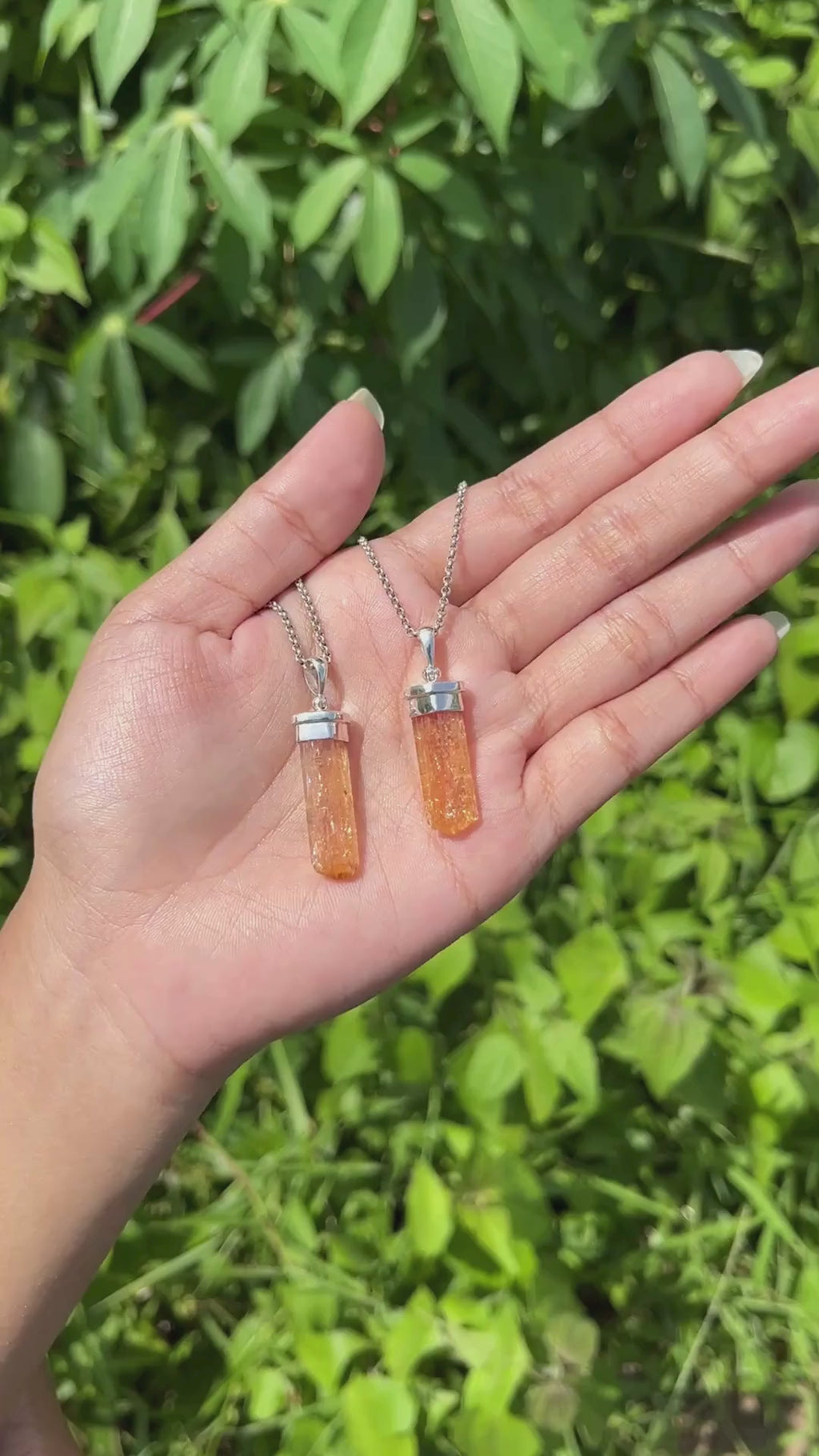 - Glowing with rich golden-peach tones, this Imperial Topaz crystal showcases the stone’s naturally rare warmth and luminous clarity. Handcrafted in fine sterling silver, the pendant measures approximately 1.4 - 1.5 inches including the bale.