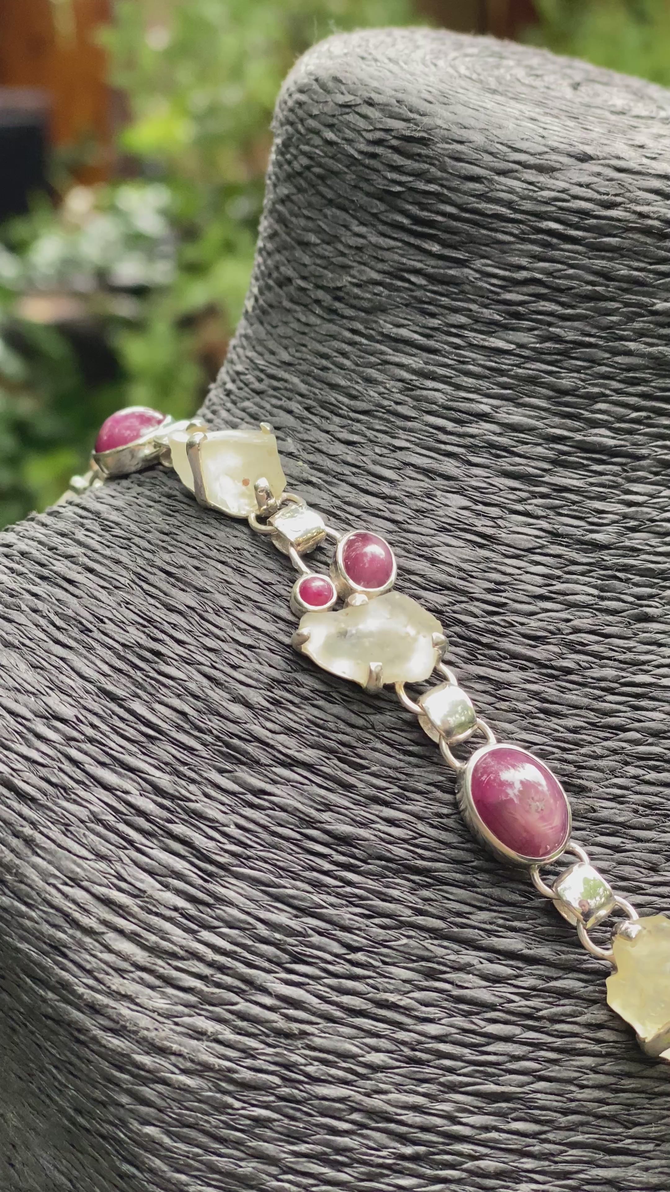Starborn Libyan Desert Glass & Star Ruby Necklace in Sterling Silver