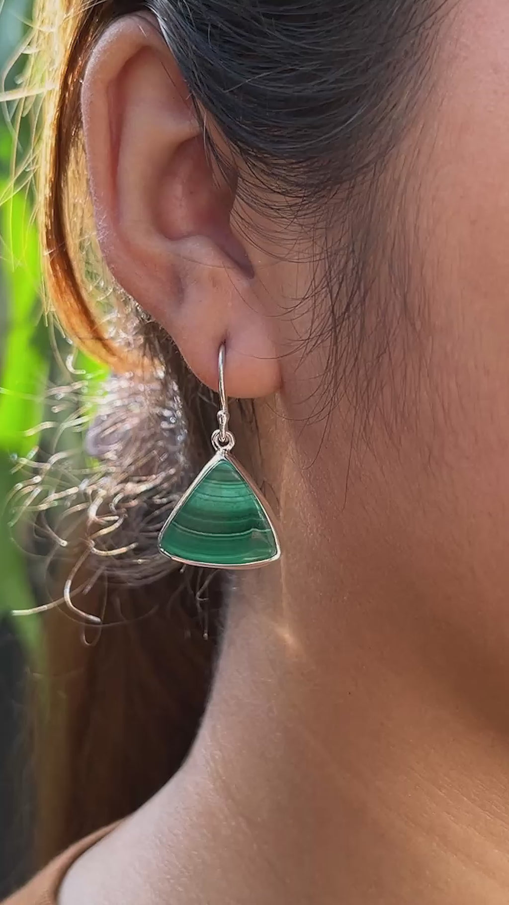 Set in solid 925 Sterling Silver with a classic bezel and ear hook, the earrings measure 1.36" tall by 0.75" wide, highlighting the Malachite’s natural beauty while offering a refined, wearable design. Perfectly suited for collectors or anyone seeking a bold, sophisticated accent, these earrings come beautifully packaged in a Starborn gift box.