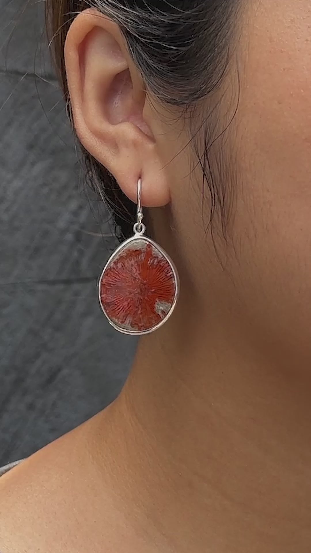 Starborn Utah Fossil Red Horn Coral Earring in Sterling Silver