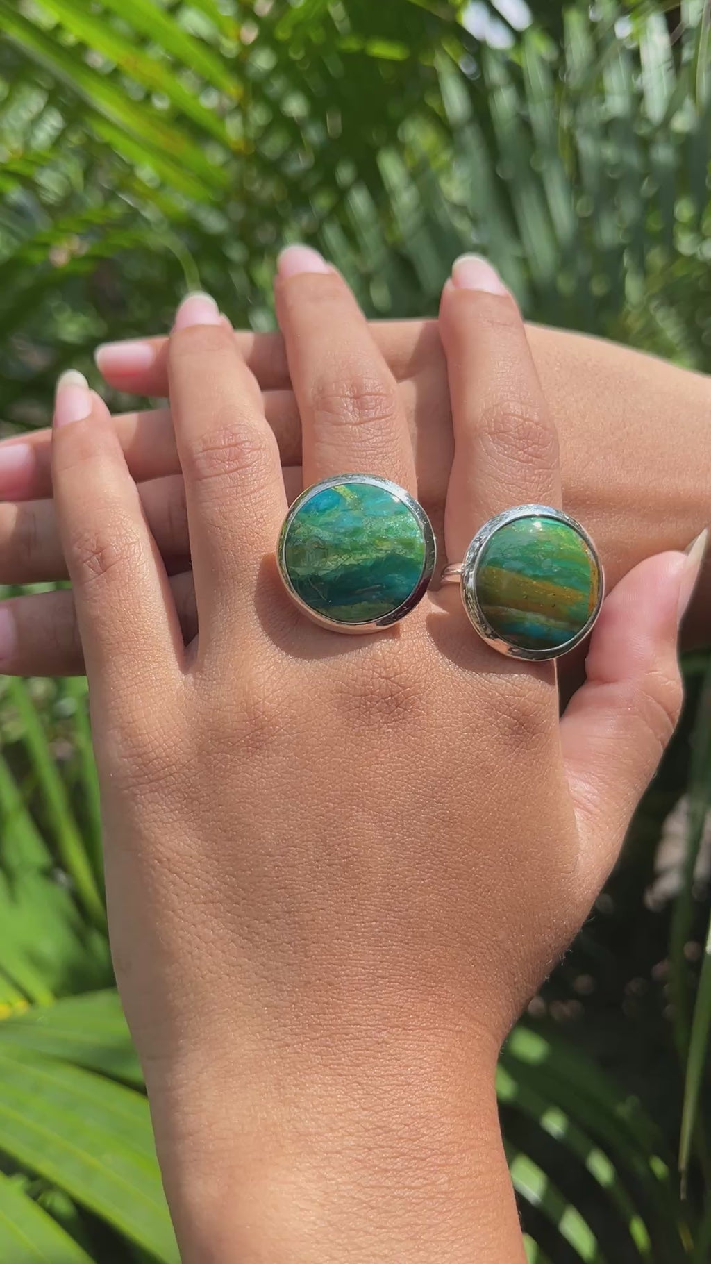 - Crafted with expert precision and a deep appreciation for style, this beautiful medallion ring features a stunning 20 mm round Peruvian Blue Opal set in a sturdy bezel setting on a 3 mm fixed shank of Fine Sterling Silver.