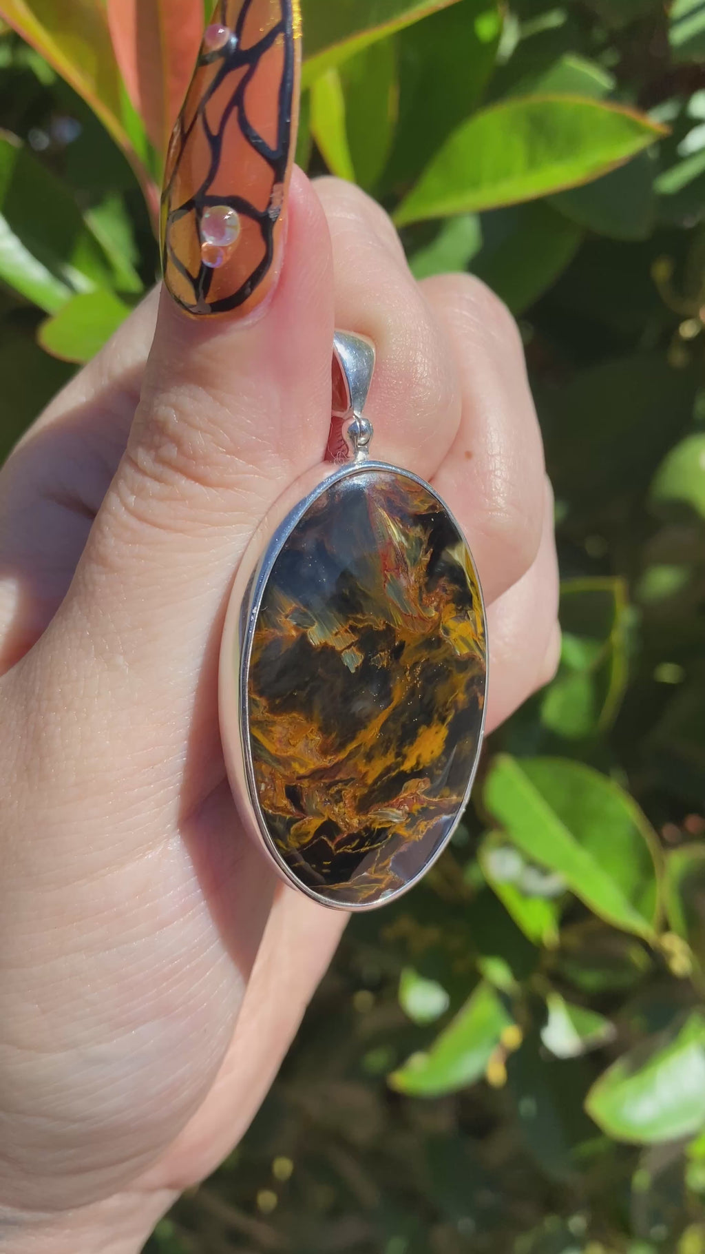 First discovered in Namibia in the 1960s, Pietersite is prized by collectors and jewelry enthusiasts alike for its dynamic color play and limited availability. Each piece is completely unique—no two patterns are ever the same—making this pendant a one-of-a-kind statement of natural artistry.