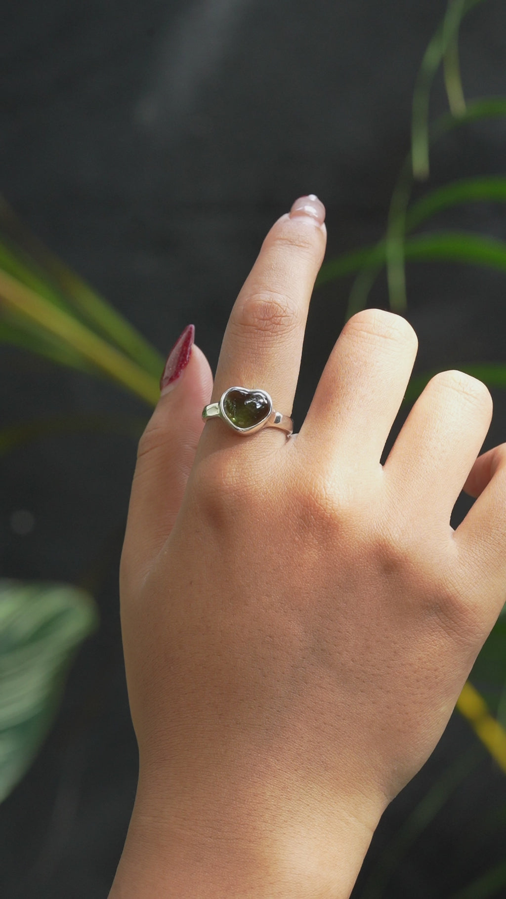 Starborn Moldavite Heart Ring in Sterling Silver - Size 8