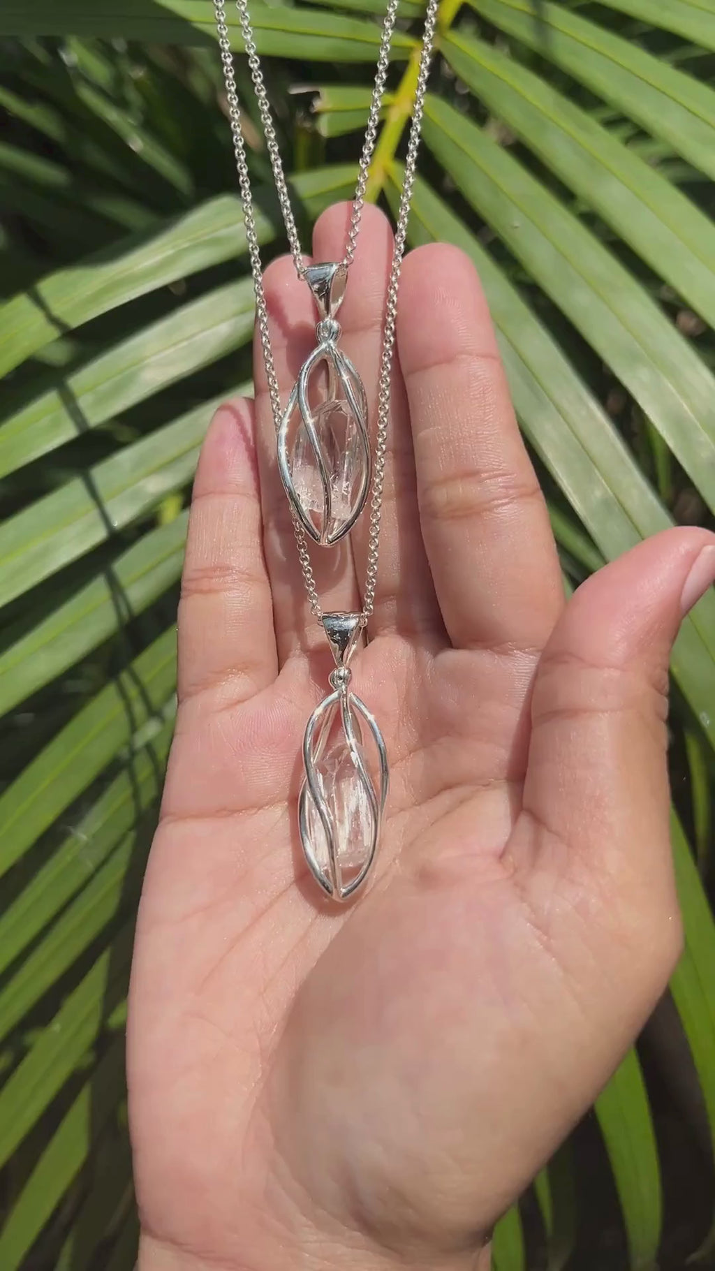 Starborn Danburite Crystal Pendant Cage Set with Pointed Bottom in Sterling Silver